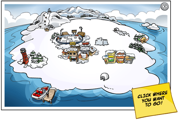 This is what the map looks like today. It’s bright, it’s colorful, and it’s a total mess if you ask me. I think Disney really lost touch with what people loved about Club Penguin to begin with: its simplicity. This new map has so much going on that I almost find it difficult to tell which parts are clickable rooms and which parts are just for design. It’s too much.