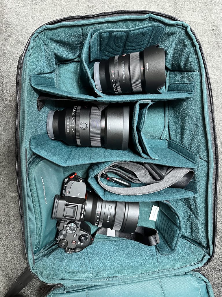 - Sony G Master 24mm f/1.4: Slightly lighter than the 50mm, this lens is perfect for street photography with its wide angle and fast aperture. Itโs built to tackle any scenario without adding too much bulk. For casual shooting, this is my preferred lens.