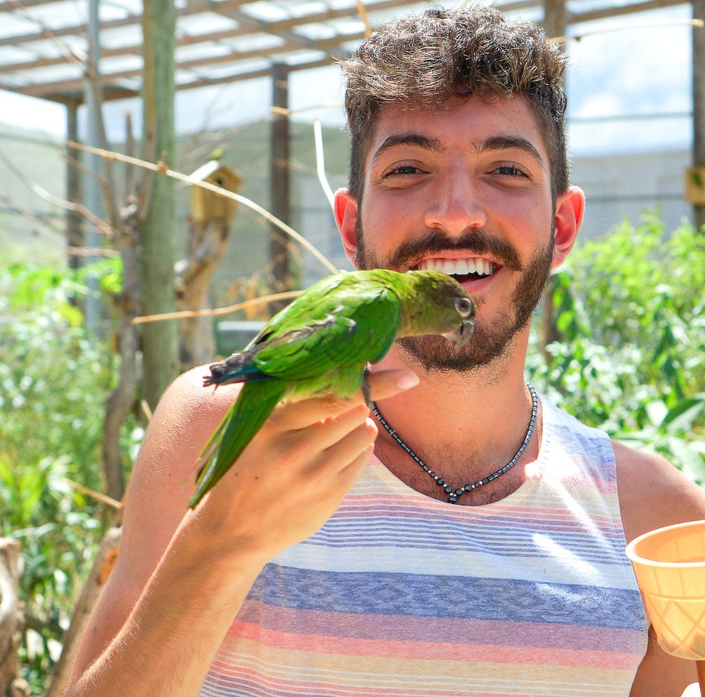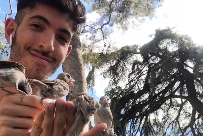While living in Spain for a year, my fascination grew and I was oftentimes called “SeΓ±or Pajarero” [meaning Mr. Birdkeeper] because the locals would see wild birds constantly flying and landing on me.